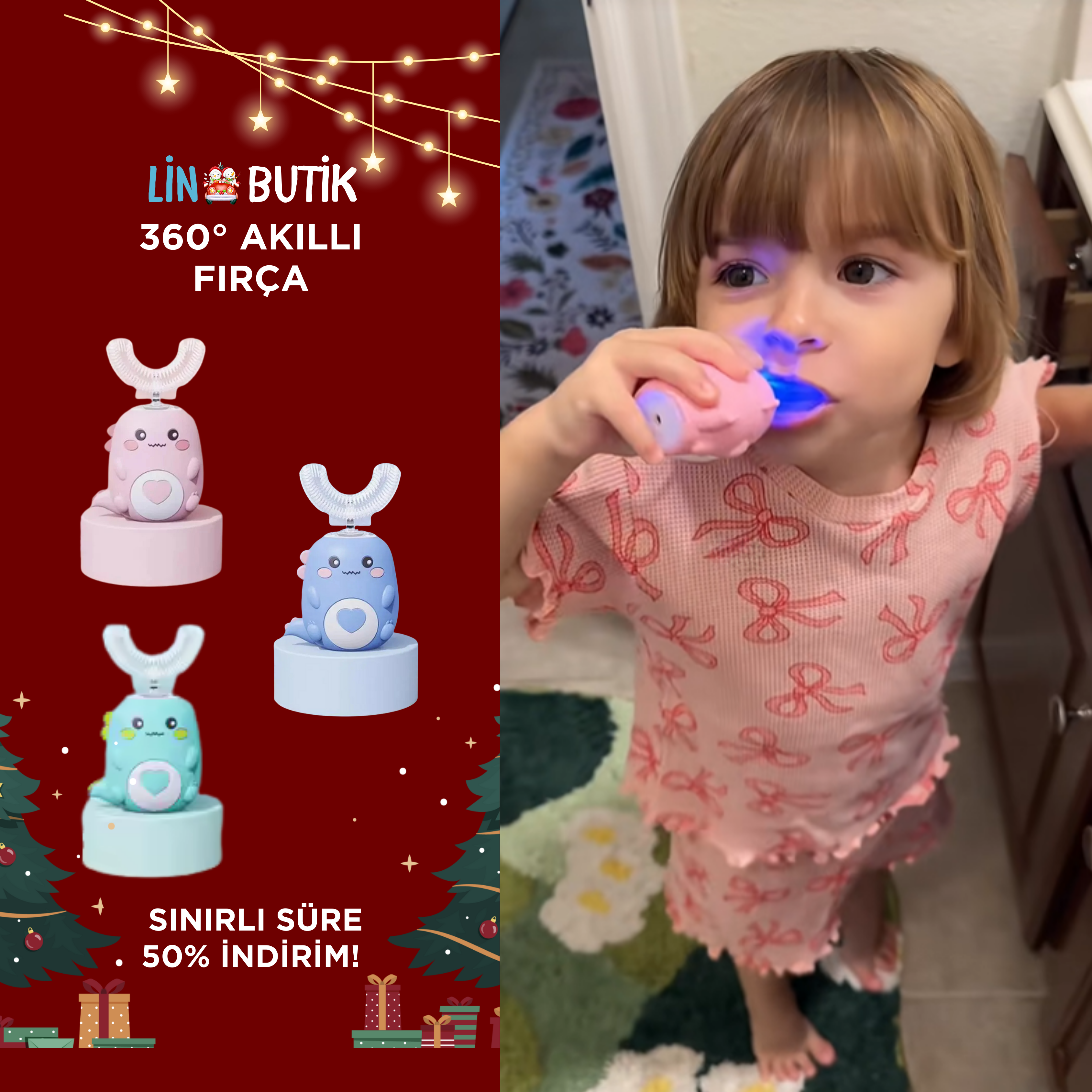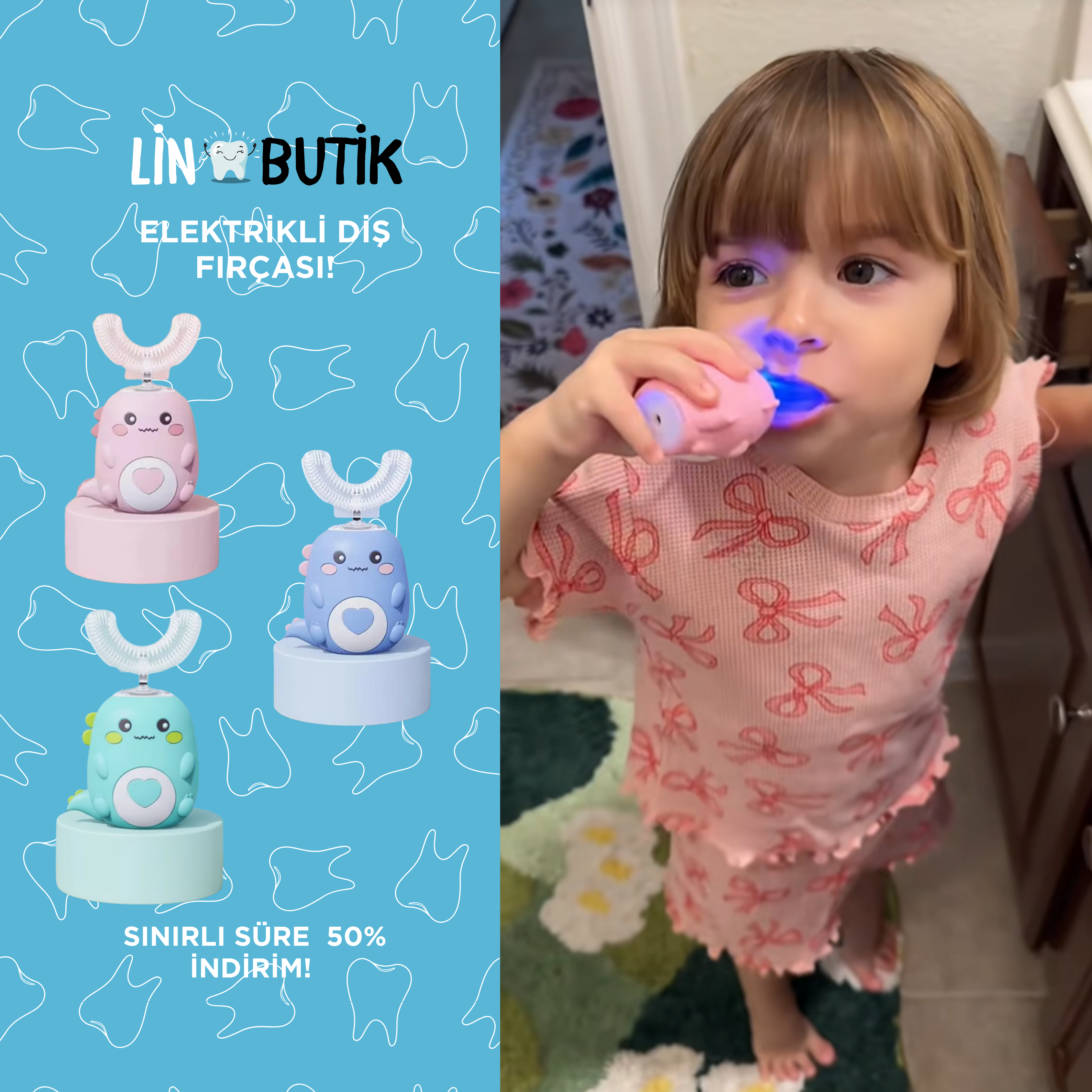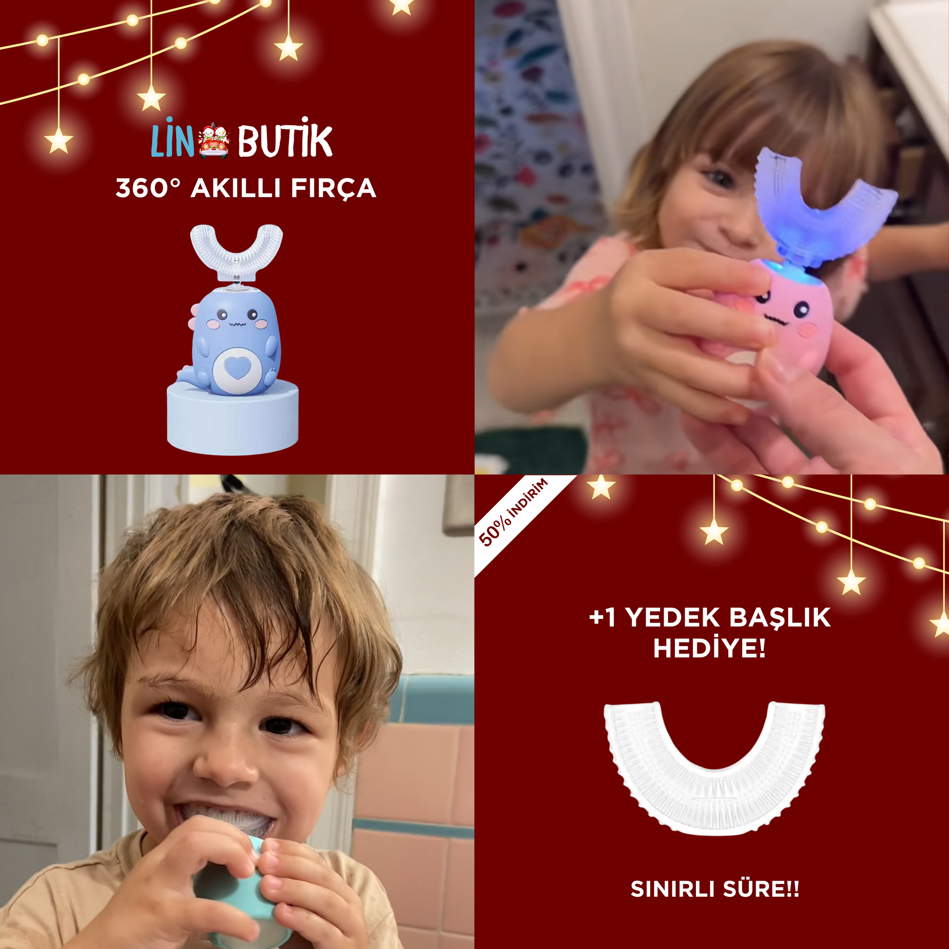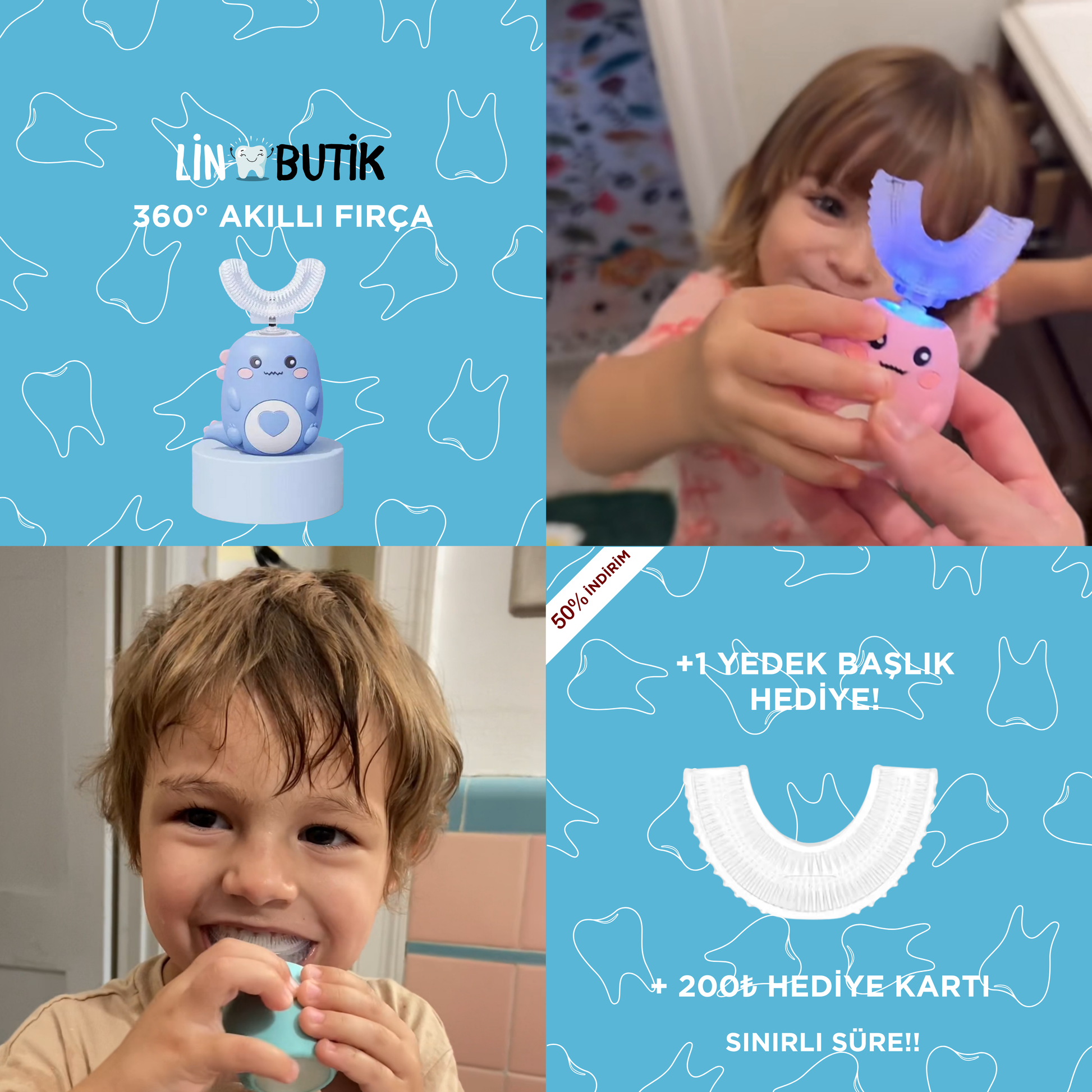 Fırça, tüm diş yüzeylerini aynı anda sararak 360° temizlik sağlar ve titreşim teknolojisiyle derinlemesine temizlik yapar.